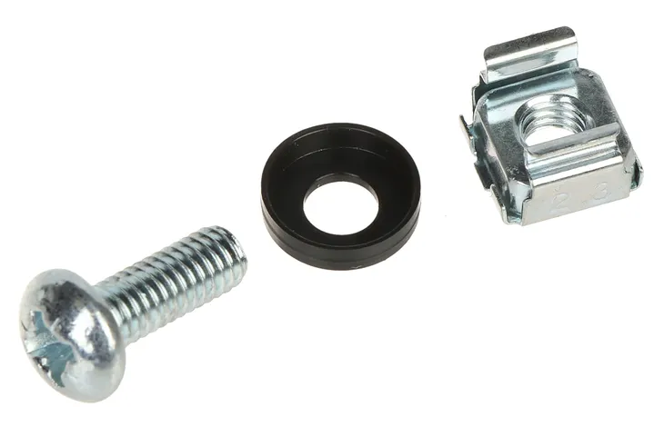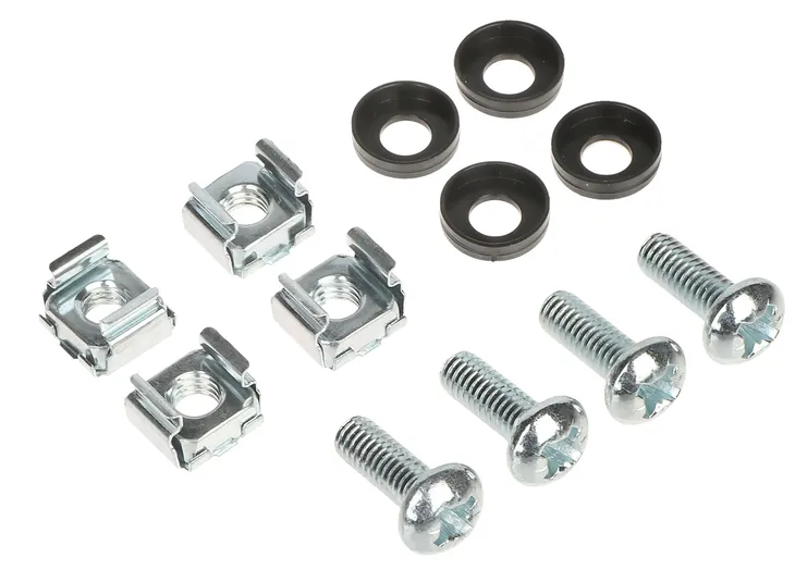 Cztery śruby do mocowania wyposażenia szaf RACK 19" / RACK 10" do szyn montażowych.
