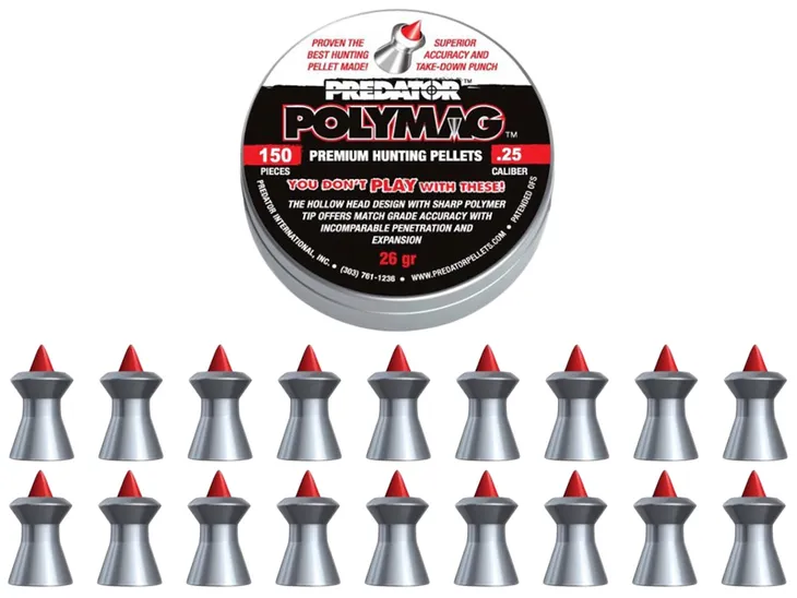 Nowy śrut diabolo JSB Predator Polymag .cal 6,35mm jest bardzo podobny do śrutu diabolo Straton, z wyjątkiem jednej bardzo użytecznej zalety, którą jest to, że przy trafieniu w cel jako pierwsza przechodzi przez niego nowa końcówka polimerowa, która ułatwi płynność przejścia reszty śrutu diabolo.