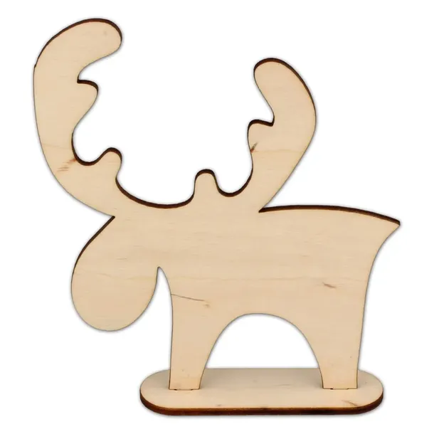 Dekoracja świąteczna ze sklejki w kształcie renifera. Podstawka dołączona do renifera umożliwia postawienie dekoru bez konieczności podparcia. Doskonale prezentuje się zarówno w formie surowej, jak i ozdobionej rozmaitymi technikami decoupage.