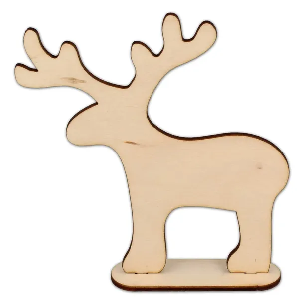Dekoracja świąteczna ze sklejki w kształcie stojącego renifera. Podstawka dołączona do renifera umożliwia postawienie dekoru bez konieczności podparcia. Doskonale prezentuje się zarówno w formie surowej, jak i ozdobionej rozmaitymi technikami decoupage.