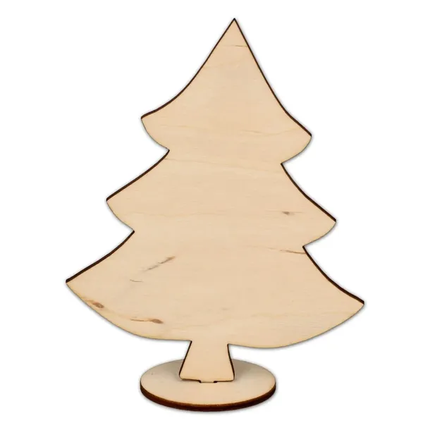 Dekoracja świąteczna ze sklejki w kształcie klasycznej choinki. Podstawka dołączona do choinki umożliwia postawienie dekoru bez konieczności podparcia. Doskonale prezentuje się zarówno w formie surowej, jak i ozdobionej rozmaitymi technikami decoupage.