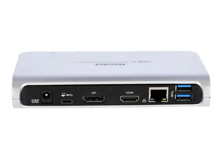 Stacja dokująca HAMLET HDOCKS500C to idealne rozwiązanie dla osób, które chcą zamienić laptopa w pełnoprawne stanowisko pracy. Wystarczy jeden kabel USB‑C, aby uzyskać dostęp do szeregu portów i funkcji - m.in. dwóch wyjść wideo (HDMI + DisplayPort 4K), trzech portów USB 3.0, jednego USB-C, oraz wyjścia audio. Dzięki temu możesz szybko podłączyć monitory, urządzenia peryferyjne i akcesoria, bez konieczności sięgania po szereg adapterów.