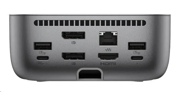 HP Stacja dokująca Thunderbolt 4 100 W G6. Technologia łączności: Przewodowa, Interfejs hosta: Thunderbolt 4, Maksymalne zasilanie USB: 100 W. Prędkość transferu danych przez Ethernet LAN: 10,100,1000,2500 Mbit/s. Kolor produktu: Szary, Typ HD: 5K Ultra HD, Maksymalna rodzielczość cyfrowa: 5120 x 2880 px. Zasilanie: 120 W, Długość kabla Thunderbolt 4: 1 m. Obsługiwane systemy operacyjne Windows: Windows 10, Windows 11, Obsługiwane systemy operacyjne Mac: MacOS, Pozostałe obsługiwane systemy operacyjne: ChromeOS