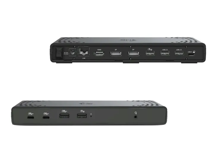 - 7 portów USB: 2x USB-C (10 Gb/s) obsługujące szybkie ładowanie BC 1.2 i 5x USB-A (1x Gen 2 (10 Gb/s) obsługujące szybkie ładowanie BC 1.2, 2x Gen 1 (5 Gb/s) obsługujące szybkie ładowanie BC 1.2 i 2x USB 2.0)