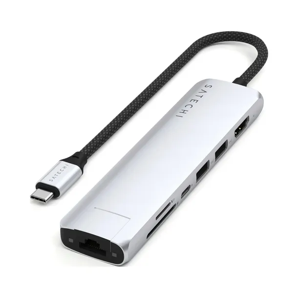 Satechi - 7-in-1 USB-C Slim Multiport Adapter with Ethernet - Wieloportowy Adapter USB-C, HDMI, USB-A 3.2, Micro/SD