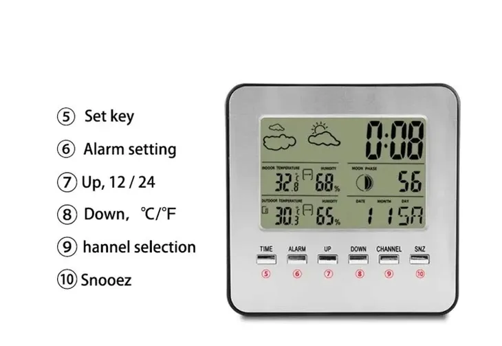 - Wyświetlacz temperatury i wilgotności (wewnątrz i na zewnątrz)