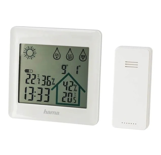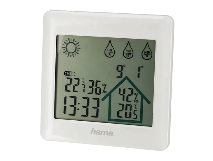 - Cyfrowy wyświetlacz temperatury, wilgotności, godziny, daty i prognozy pogody