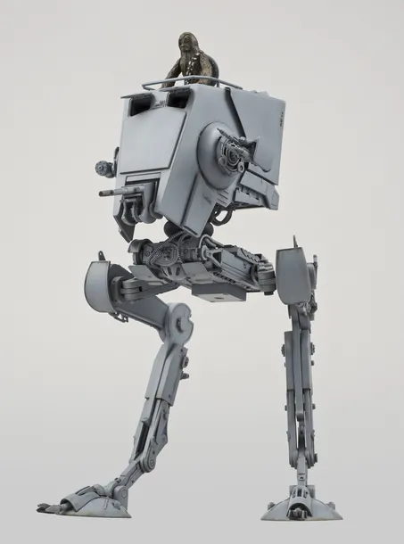 AT-ST Walker (All Terrain Scout Transport, inna nazwa Scout Walker) to lekka, zwiadowczo-transportowa maszyna krocząca z uniwersum Gwiezdnych Wojen. Maszyna pojawiła się po raz pierwszy na ekranie kinowym w filmie "Star Wars: Empire strikes back" z 1980 roku. Miała ok. 4,5 m szerokości przy wysokości rzędu ok. 9 metrów. Maszyny kroczące AT-ST w swej istocie stanowiły bardzo daleko idące rozwinięcie lekkich maszyn zwiadowczych AT-RT. Zostały jednak zdecydowanie powiększone, zapewniały załogantowi większe szanse na przeżycie, jak również posiadały lepsze uzbrojenie. Wyraźnie wzrosła również ich masa własna. Była też zdolne do przenoszenia 3 załogantów. Jednak nadal opierały się na koncepcie dwunożnej maszyny kroczącej o sporych możliwościach poruszania się w trudnym terenie. Rzecz jasna głównym użytkownikiem maszyn AT-ST było Imperium Galaktyczne, a później także Najwyższy Porządek (ang. First Order). Producent: Revell Kod produktu: REV-01202 Waga: 0.25 kg Ean: 4009803012025 Skala:1:48