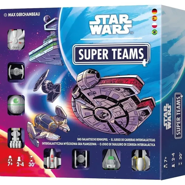 Gotowi, do lotu, start! Intergalaktyczny wyścig właśnie się rozpoczyna, a o zwycięstwo będą walczyć najznamienitsze statki kosmiczne ze świata Gwiezdnych Wojen: od myśliwców TIE, poprzez X-Wingi, aż po samego Sokoła Millennium. Star Wars Super Teams to pełna zabawy wyścigowa gra planszowa, w której przy użyciu rozmaitych kart staramy się sprawić, by to nasza drużyna jako pierwsza przekroczyła linię mety. Będziemy przemieszczać zarówno swoje statki, jak i te należące do przeciwników, a sprytne użycie dostępnych ruchów pozwoli nam zastawiać przemyślane pułapki, które przybliżą nas do zwycięstwa.