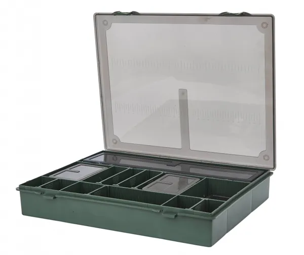 Pudełko ma zmienny układ i jest dostarczane z małymi pudełeczkami do przechowywania oraz płytami montażowymi. Idealne do bezpiecznego i zorganizowanego przechowywania wszelkiego rodzaju akcesoriów. Pudełka mają przezroczystą pokrywę dla lepszego przeglądu i mogą być zamykane za pomocą solidnych klipsów.