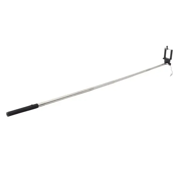 Stalowy uchwyt dostosowany do smartfonów o szerokości 55-80 mm. Zwolnienie migawki następuje za pomocą przycisku umieszczonego na rączce. Ruchoma głowica w zakresie 180 stopni. Dodatkowo wyposażony w śrubę statywową 1/4” umożliwiającą zamontowanie aparatu fotograficznego.