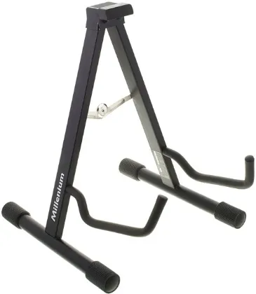 Millenium GS-2001 A to kompaktowy, stabilny stojak przeznaczony do gitar akustycznych i klasycznych w rozmiarach 1/4, 1/2, 3/4 oraz 4/4. Dzięki regulowanej szerokości pasuje do różnych typów instrumentów. Strefy styku z gitarą są pokryte gumą, co zapewnia doskonałą ochronę przed zarysowaniami. Stojak jest lekki (1,2 kg), łatwy w transporcie i wyjątkowo stabilny po rozłożeniu (szerokość 33 cm).