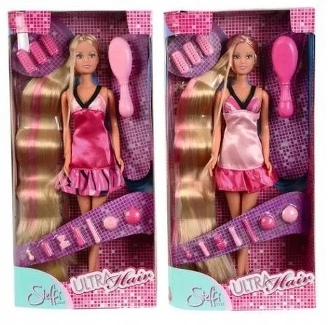 Steffi z bardzo długimi włosami, w błyszczącej sukience, z akcesoriami.