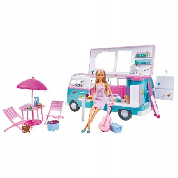 ✔️ Wyrusz w drogę kamperem razem ze Steffi i przeżyj mnóstwo niezwykłych przygód! Zabawa jest jeszcze bardziej ekscytująca dzięki licznym akcesoriom. Popchnij pojazd, aby ruszyć w nieznane. Czas na wymarzone wakacje! Lalka Steffi z długimi, blond włosami ubrana jest w różowo-niebieską sukienkę i buty. Jest gotowa, aby wyjechać na wakacje swoim uroczym kamperem, który przekształca się z samochodu w wycieczkową strefę zabawy z łóżkiem, łazienką i kuchnią oraz wieloma dodatkowymi akcesoriami wyposażenia. Dodatkowo zestaw zawiera akcesoria do spędzania wolnego czasu przy grillu z gitarą lub na desce surfingowej. Dziewczynki pokochają niezliczone możliwości wyrażania siebie i opowiadania przeróżnych historyjek! To wspaniały prezent dla dzieci od 3 roku życia.