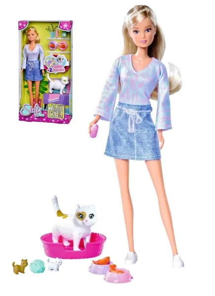 Lalka Steffi z Kociakami + Akcesoria Zestaw Steffi z Malutkimi Kociętami, który przynosi do zabawy Twojego dziecka uroczą lalkę Steffi oraz dwa urocze malutkie kocięta. Ten zestaw to doskonała zabawa i nauka odpowiedzialności, opieki nad zwierzętami oraz kreatywności.Główne cechy produktu:- Zestaw zawiera lalkę Steffi i dwa kocięta- Doskonały prezent dla małych miłośników zwierząt- Zachęca do kreatywnej zabawy i opieki nad zwierzętamiLalka Steffi jest gotowa na opiekę nad swoimi malutkimi kocię