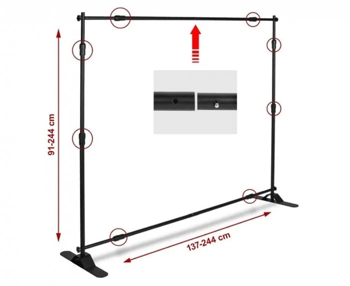 Stelaż do paneli dekoracyjnych (regulowany) Wysokość: 91 - 244 cm Szerokość: 137 - 244 cm Kolor: Czarny Ilość sztuk w opakowaniu: 1 Producent: GoDan S.A. Stelaże służą do wieszania paneli które mają możliwość łączenia się ze sobą wzajemnie. Panele do stelaża należy mocować za pomocą opasek zaciskowych (tzw trytytek). Dodatkowo wraz ze stelażem jest dołączany drut powlekany, który służy do tego żeby go rozpinać pomiędzy rurkami, z tyłu paneli, aby wisiały bardziej stabilnie, ale nie jest to zazwyczaj konieczne (chyba że np. wieje wiatr)