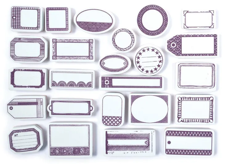 Zestaw 24 gumowych stempelków. W zestawie dodatkowo jedna gąbeczka z czarnym tuszem 2,4x2,4 cm. Wymiary zestawu D: 9 cm, H: 9,5 cm.