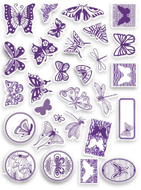 Zestaw 29 gumowych stempelków. W zestawie dodatkowo jedna gąbeczka z czarnym tuszem 2,4x2,4 cm. Wymiary zestawu D: 9 cm, H: 9,5 cm.