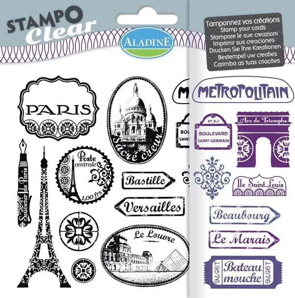 Giętkie stempelki z silikonu na arkuszu 15x12,5 cm. Wymagają rączki w postaci bloku akrylu lub szkła, do której przyczepiają się na zasadzie przyssawki.