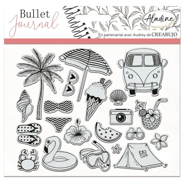 Zestaw 21 giętkich stempelków z przezroczystego silikonu.