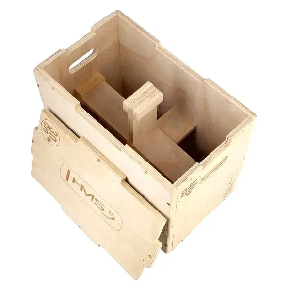 DSC04 HMS to drewniana skrzynia, przeznaczona do treningu typu crossfit. Dzięki przewróceniu skrzyni na różne boki, możemy uzyskać trzy wysokości i dostosować je, do poziomu zaawansowania osoby trenującej.
