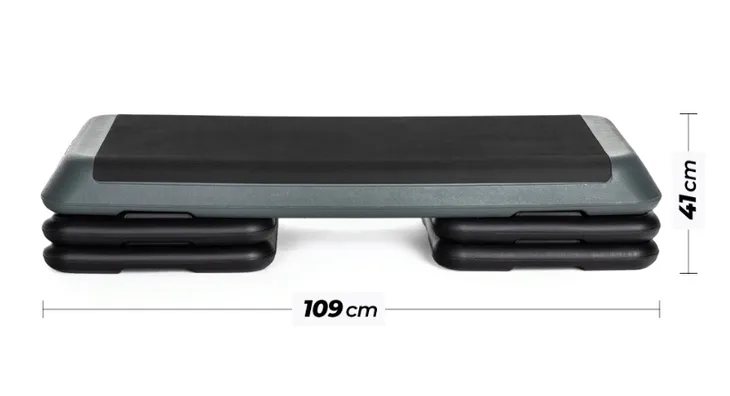Długość 109 cm i szerokość 41 cm blatu stepu zapewniają wystarczająco dużo miejsca na stopy podczas ćwiczeń. Ten duża powierzchnia do ćwiczeń gwarantuje stabilność, pewność i bezpieczeństwo podczas każdego treningu, nawet tych najbardziej intensywnych.