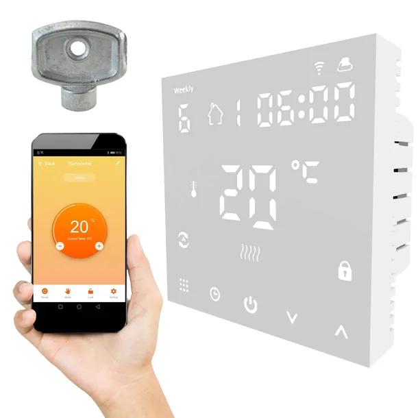Sterownik WiFi ogrzewania podłogowego z funkcją programowania i blokadą rodzicielską.