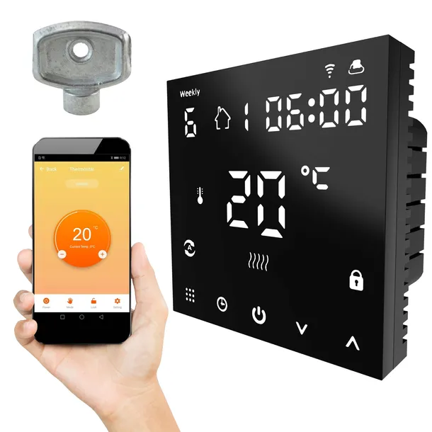 Sterownik WiFi ogrzewania podłogowego z funkcją programowania i blokadą rodzicielską.