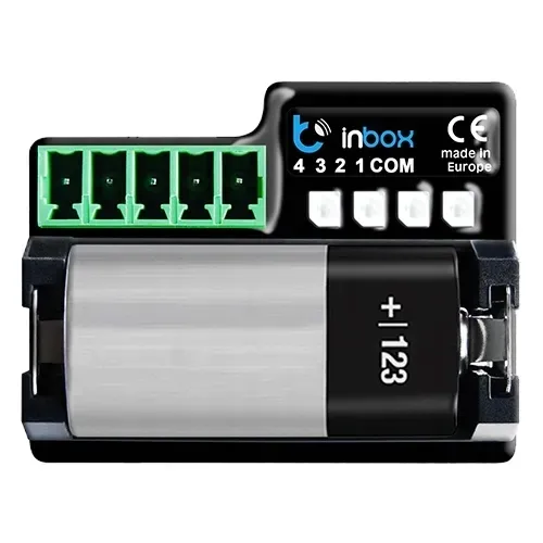 inBox to zasilany baterią litową 3V (CR 123A) moduł, który z łatwością umieścimy w dowolnym miejscu, np. w puszcze elektroinstalacyjnej, pod przyciskiem dzwonkowym itp. Urządzenie jest wyposażone w 4-kanały, którym fizycznie odpowiadają przyciski dzwonkowe podłączone do przypisanych punktów. Do każdego z kanałów można przypisywać sterowniki Blebox, które uruchomią się poprzez naciśnięcie przycisku dzwonkowego. Wtedy Inbox przesyła sygnał do sterownika, który uruchamia podłączone do niego podzespoły.