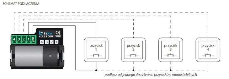 inBox działa z każdym przyciskiem monostabilnym (dzwonkowym) – pozwala to na pełną swobodę aranżacji wnętrza.