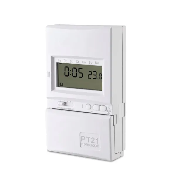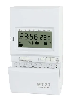 PT21 jest następcą termostatu PT20. Modyfikacja pozwala na uzyskanie wysokiego standardu ustawianych funkcji przy zachowaniu prostoty w programowaniu i obsłudze. Przy zastosowaniu tego termostatu efektywnie zostaje wykorzystana energia pozostawiając komfort cieplny na wysokim poziomie. Duże możliwości programu (6 dowolnych temperatur w 6 dowolnych czasach na każdy dzień) pozwala zaspokoić wszelkie wymagania użytkownika.
