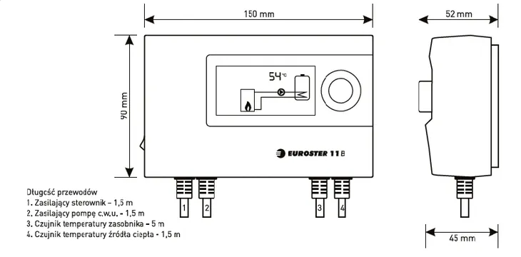 EUROSTER 11B sterownik do pompy ładującej zasobnik c.w.u. z pomiarem temperatury