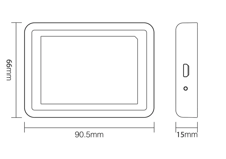 - Wymiary: 90.5 x 66 x 15 mm