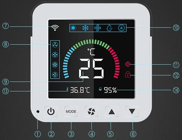 - Predefiniowany tryb komfortu dla wilgotności - ustawienie zakresów automatycznego utrzymania wilgotności -sterowanie wentylatorem