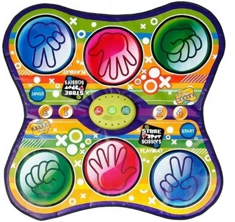 Mata muzyczno - edukacyjna papier, nożyce, kamień. Zabawa polega na przyciskaniu odpowiednich obrazków na macie przy użyciu rąk i nóg.
