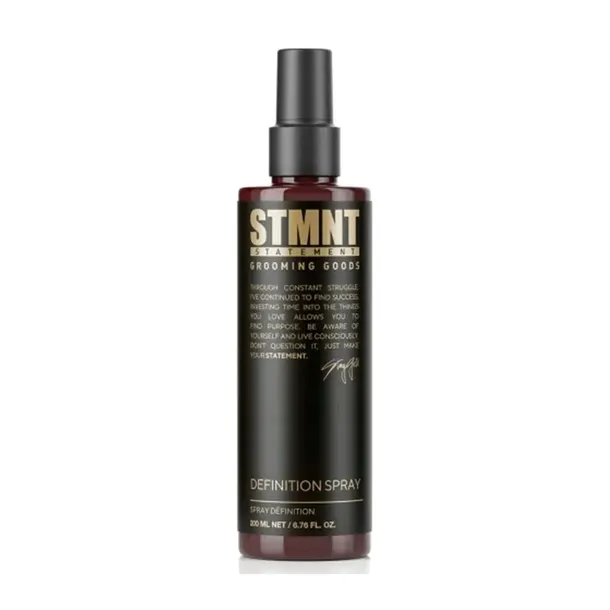 STMNT Definition Spray - definiujący spray do włosów, który zapewnia precyzyjne modelowanie i długotrwałe utrwalenie. Lekka formuła z efektem matowym, nie obciąża włosów. Zawiera polimery utrwalające i wyciągi roślinne dla pielęgnacji. Świeży, męski zapach.