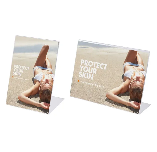 Stojak informacyjny "L" idealny do prezentacji informacji na ladzie, biurku lub stole. Stojak wykonany jest metodą giętą z przezroczystego tworzywa sztucznego. Podstawka zapewnia pożądaną stabilność. Ulotki wymienia się w bardzo prosty sposób - wystarczy lekko rozchylić dwie połówki. Stojak informacyjny typu "L" występuje w wielu standardowych formatach, od A9 do A3. Kieszonka w wersji pionowej i poziomej dla każdego formatu. Stojak "L" przeznaczony jest do jednostronnej prezentacji.