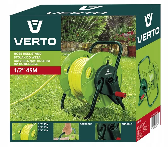 ✔️ Stojak do węża ogrodowego VERTO (nr ref. 15G790). Stojak został wykonany z trwałego tworzywa, umożliwia wygodne podlewanie, przenoszenie i przechowywanie węża ogrodowego. Bęben stojaka mieści około 45 m węża 1/2", około 35 m węża 5/8", około 15 m węża 3/4".