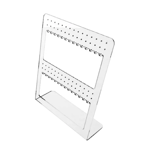 Bardzo elegancki stojaczek na kolczyki z plexi. W stojaczku wycięte są otworki w celu wygodnego wieszania różnych modeli kolczyków.