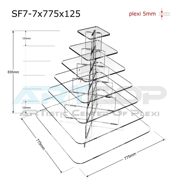 Stojak kwadratowy, kaskadowo-modułowy z plexi 5mm wys. 83cm.