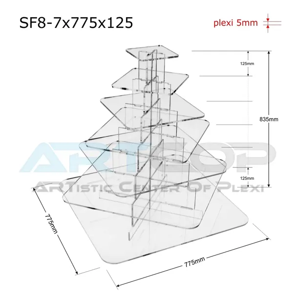 Stojak kwadratowy, kaskadowo-modułowy z plexi 5mm wys. 83cm.