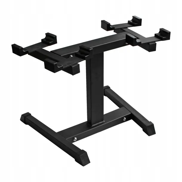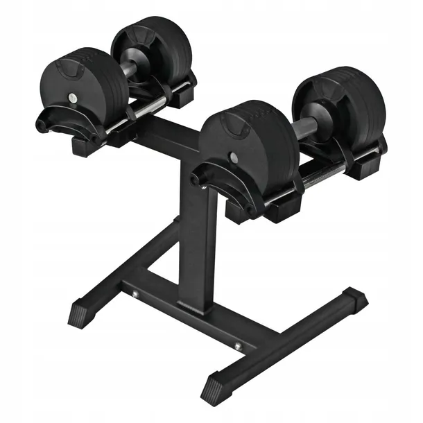 Stojak na hantle MASTER Spin oferuje stabilną stalową konstrukcję do umieszczenia dwóch hantli. Stojak wykonany jest z wytrzymałych profili stalowych, nogi wyposażone są w antypoślizgową powierzchnię . Dzięki plastikowym uchwytom w górnej części stojaka hantle są dobrze zamocowane i nie ma niebezpieczeństwa przypadkowego spadnięcia ze stojaka. Stojak jest przystosowany do hantli MASTER Spin.