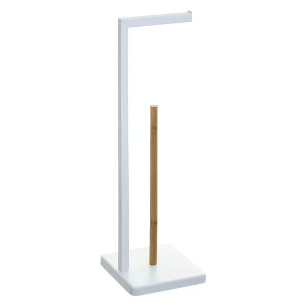NATUREO stojak na papier toaletowy z zapasem został wykonany z metalu i naturalnego drewna bambusowego. Stojak zaprojektowany w prostym, minimalistycznym designie będzie pasował do większości wnętrz i aranżacji. Bambusowy drążek pozwala na umieszczenie kilku rolek papieru, aby był zawsze pod ręką. Wymiary produktu: 20 x 20 x 65 cm.