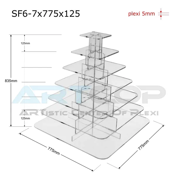 Stojak kwadratowy, kaskadowo-modułowy z plexi 5mm wys. 84cm.