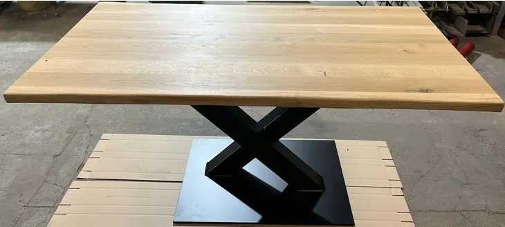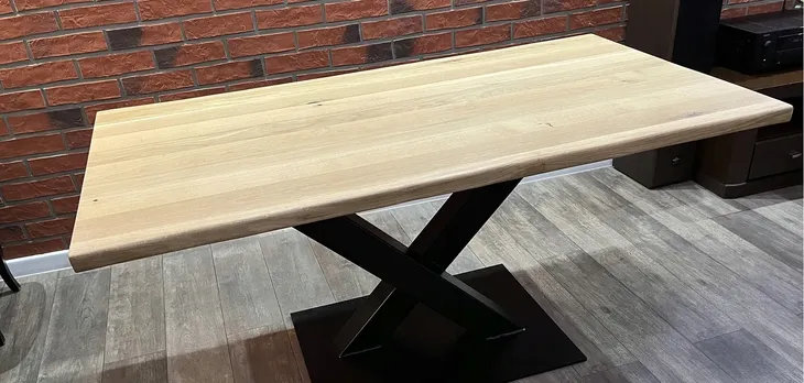 Charakterystyczne dla naszych mebli jest stosowanie materiałów stalowych o masywnych kształtach , profili jak i blach grubościennych tak aby nadać meblu powagi, ręcznie wykonany stół dębowy o nierównomiernym wykończeniu na dłuższym boku drewna , podstawa z blachy stalowej grubości 10 mm w stylu INDUSTRIALNYM, stół będzie stanowi charakterystyczne uzupełnienie stylowego mieszkania.