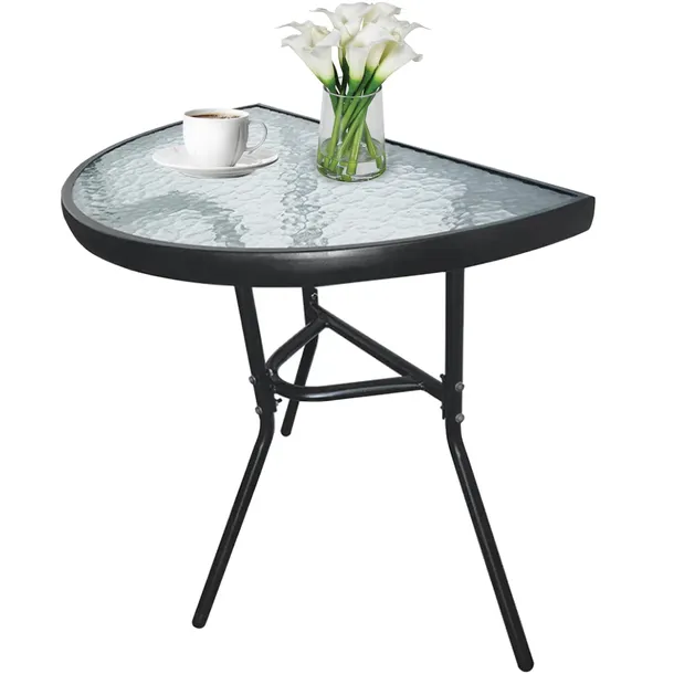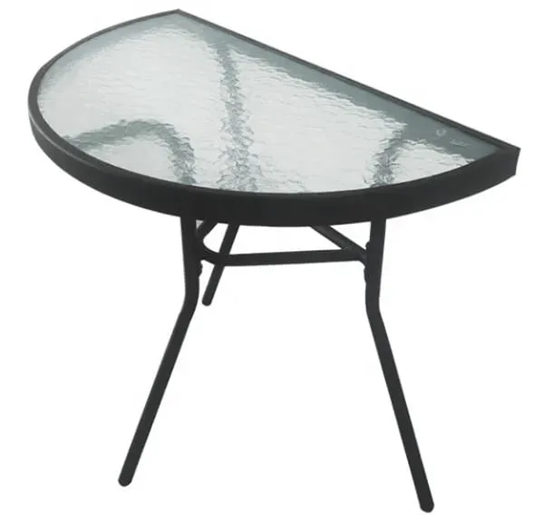 - Stół półokrągły dostępny w kolorze czarnym z transparentnym blatem i dekoracyjnym wzorem