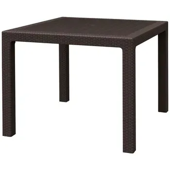 Stół kwadrat Melody to praktyczny i elegancki stół z wykończeniem imitującym naturalny splot rattanu. Mebel doskonale wypełni mniejsze przestrzenie domowe, takie jak balkon lub mały ogród, a także z powodzeniem uzupełni aranżację wnętrza. Wykonany z odpornego na promienie UV i warunki pogodowe plastiku, bardzo łatwo jest go utrzymać w czystości i złożyć. Produkt dostępny w klasycznej palecie kolorów.