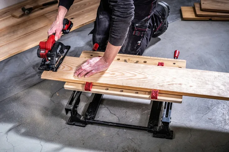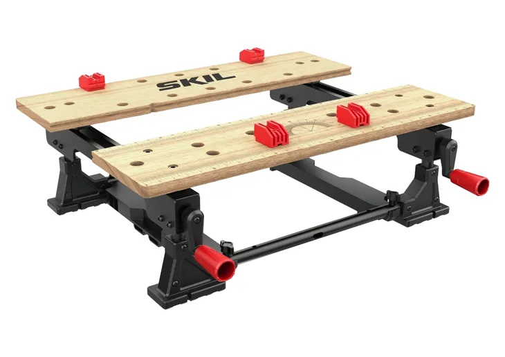 Stół 1290 firmy SKIL został wyposażony w dwa uchwyty śrubowe oraz szczęki które umożliwiają mocowanie elementów o różnych kształtach i rozmiarach zarówno w pionie jak i w poziomie.