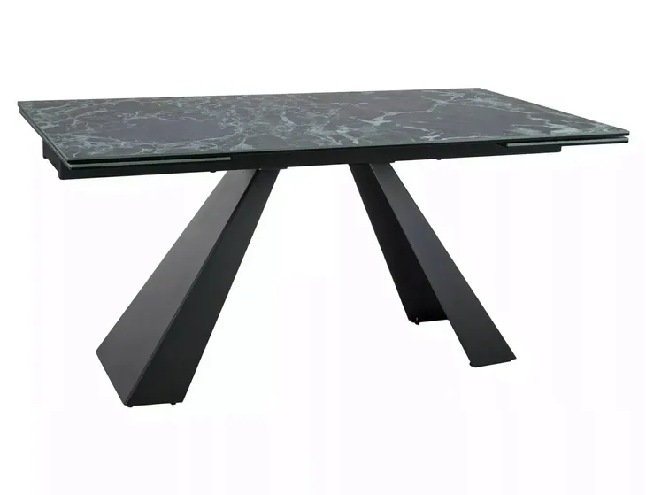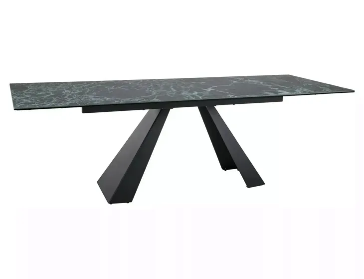 Stół rozkładany, blat: szklo hartowane + ceramika VERDE ALPI, stelaż: metal, kolor: morski mat / czarny mat.