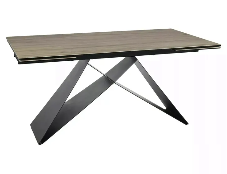 Stół rozkładany, blat: szklo hartowane + ceramika SABBIA, stelaż: metal, kolor: jasny brąz mat / czarny mat.